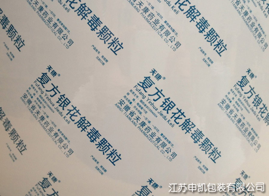 用于粉劑、顆粒劑、片劑、中藥飲片、透皮貼劑和醫療器械等包裝,它既能保持單層薄膜的優良特性,又能克服各單膜的不足,具有優良的特性,印刷性能比較清晰,能滿足不同包裝內容物對包裝的要求。