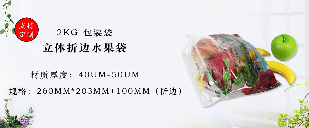 此類水果包裝袋為一種獨立的包裝形式,適合不同種類的水果包裝,可定制1-5kg不等的規格尺寸。